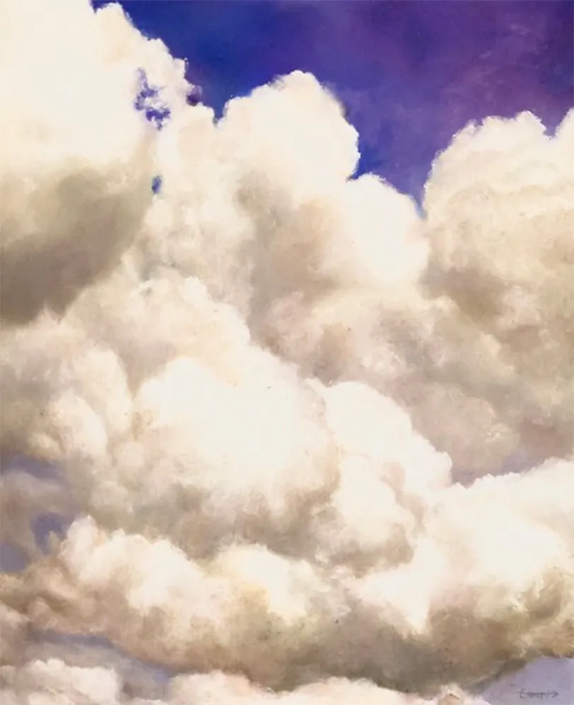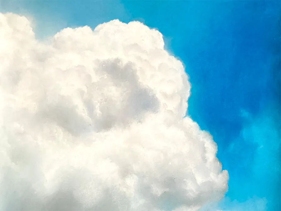 だから最初の頃の雲は、かなり写真に近く描いているなと自分で思うんですけれども、もっとリラックスしてゆるく描いても良いんじゃないかな、とも。