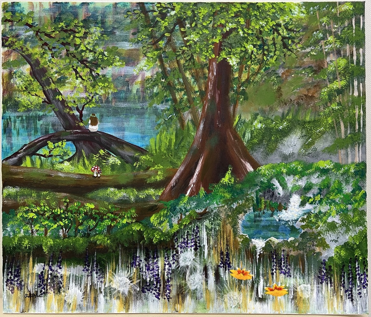 他の方々の絵を見ていると、パターンを決めて描いていらっしゃる方が多くて、すごいなと思います。自分はその時の気持ちでモチーフも描画材も決めるので、水彩だったりアクリルだったり、時には鉛筆だったり、いろいろやっていてめちゃくちゃで、統一性がないですね。好きなように描きます。これという決まったものがないところが、自分の面白いところでもあるかな、とも思っています。